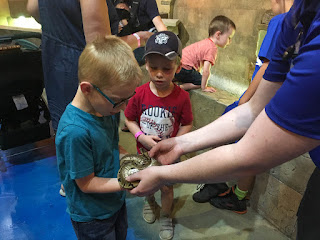 My kids love staying at my sister Becky's house and playing with her boys! Katie and Rider are only 3 weeks apart! This year they even got to meet their sweet brand new baby girl cousin Abby. One of the fun things we did here was go to the SeaQuest Aquarium where the kids got to see, touch and hold a lot of animals. Colton was in heaven. He even got to touch a small shark. Seriously, he LOVED it! Katie mostly just loved the mermaid.